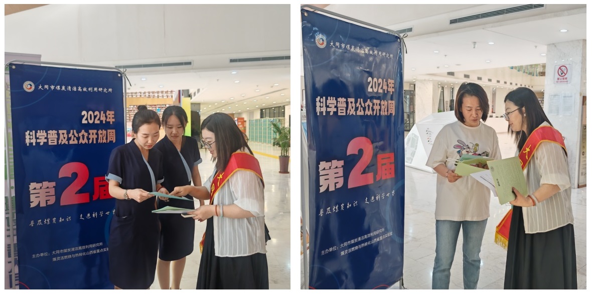 5月24日下午在大同市图书馆开展了以“节约能源资源 倡导低碳生活”为内容的科普知识宣传,通过发放科普宣传资料和低碳生活倡议书、开展科普知识问答等形式,为广大市民提供一个学习科学知识的平台,为公众解答煤炭清洁高效利用领域日常生产生活中的相关问题和实际需求。