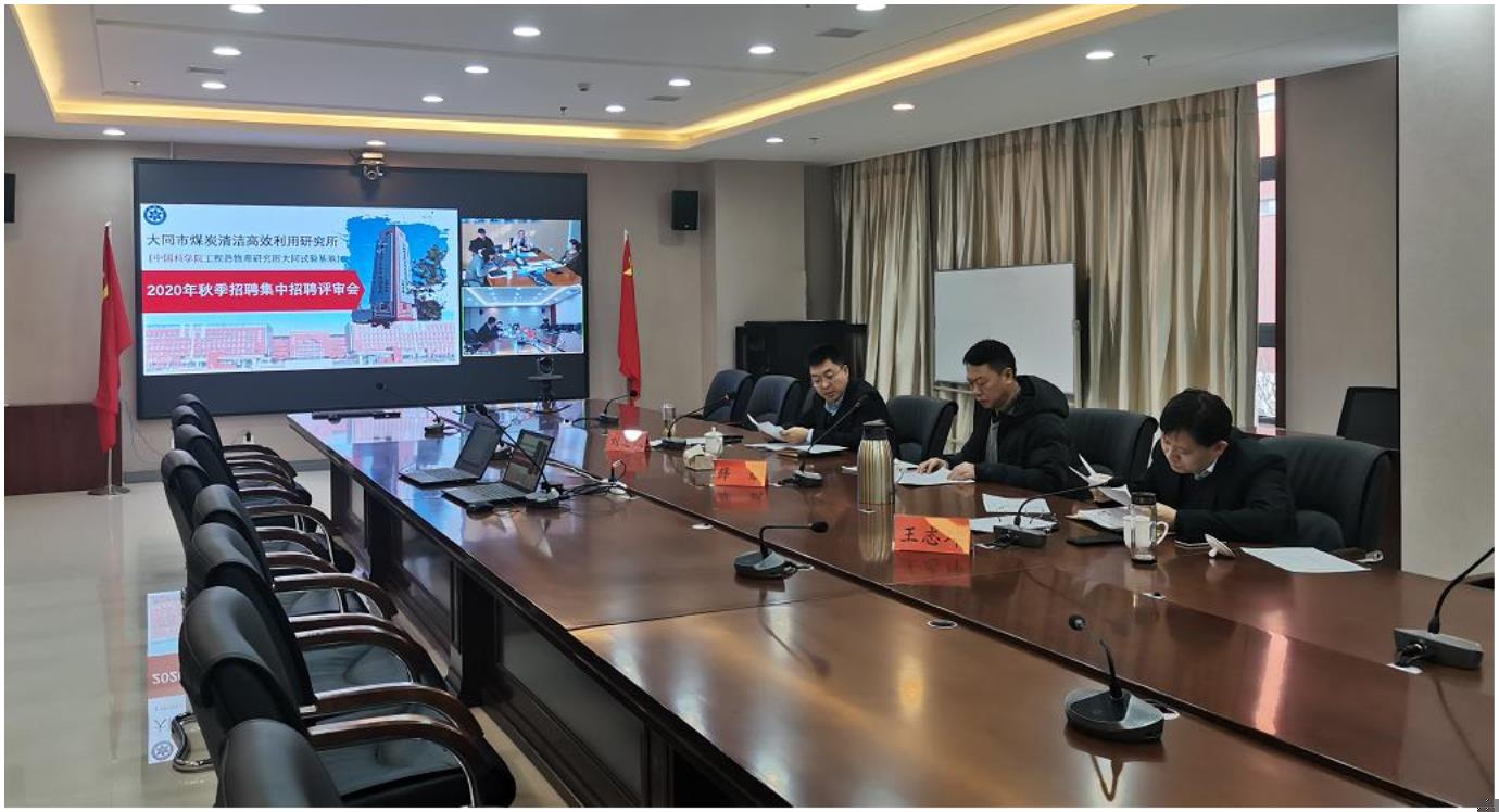 强化人才支撑,加快创新驱动。大同市煤炭清洁高效利用研究所正处于建所运行初期,亟需补充高层次专业领域人才与对口专业高学历人才力量。2021年1月20日,研究所举行了2020年秋季集中招聘评审会,上级单位大同市发展和改革委员会领导、研究所领导、中国科学院工程热物理研究所相关领域专家组成聘用委员会对应聘人员进行考察评审。