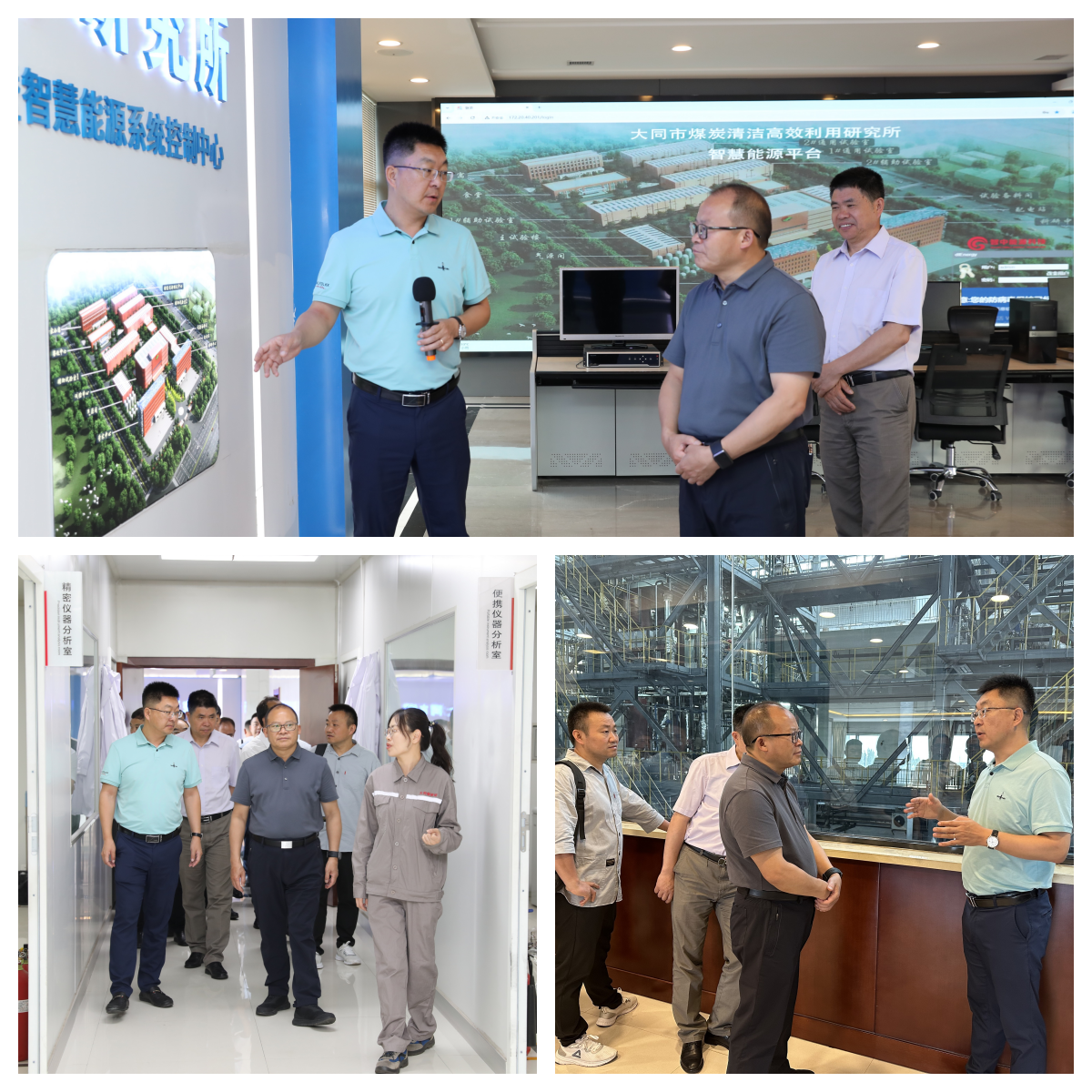 陈石一行首先参观了科研中心展厅,听取了刘志成关于大同煤研所建设历史及运行情况介绍;随后来到测试分析仪器室、主试验楼及辅1厂房,结合现有科研装备详细了解大同煤研所的科研布局及煤炭清洁高效利用领域技术研发现状。